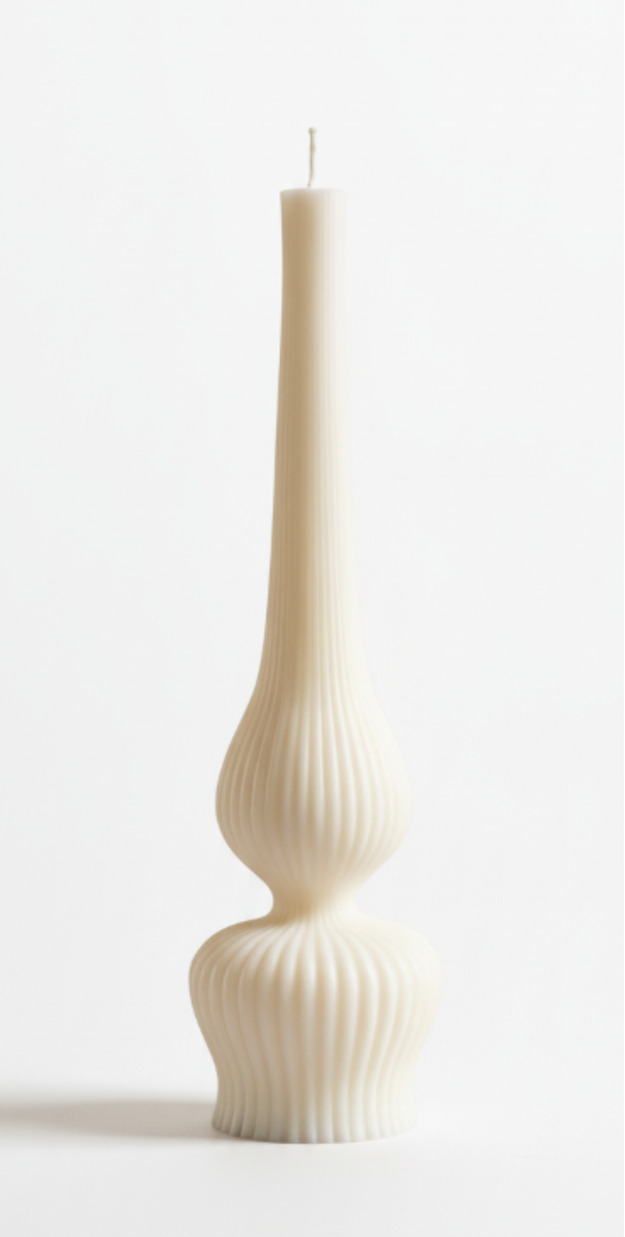 El Pilar Abstracto Bombilla combina formas escultóricas con la pureza de la cera de soya natural, creando una pieza que ilumina y decora con elegancia. Su silueta estilizada y contemporánea la convierte en un objeto de diseño ideal para espacios sofisticados o como regalo memorable.